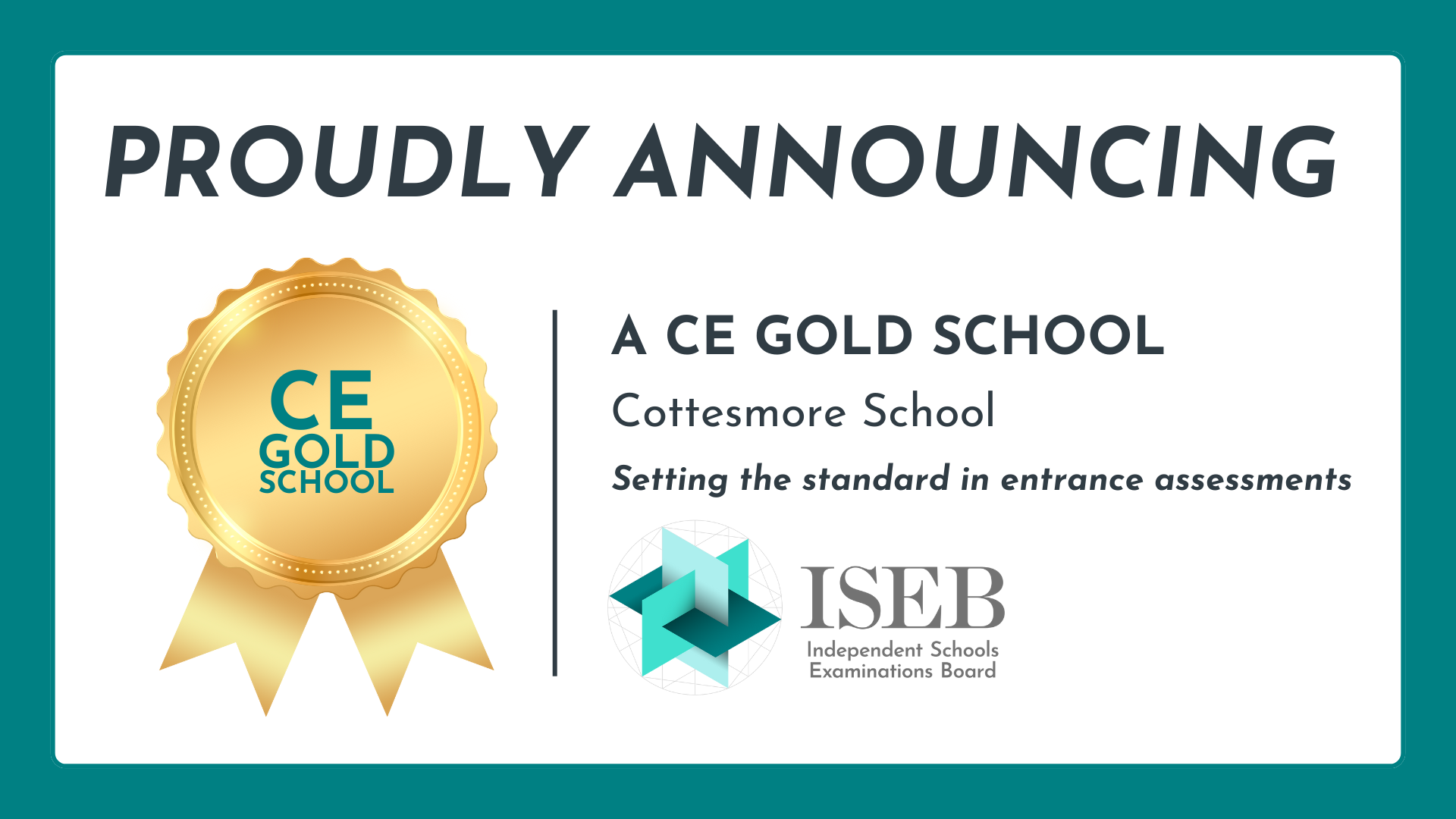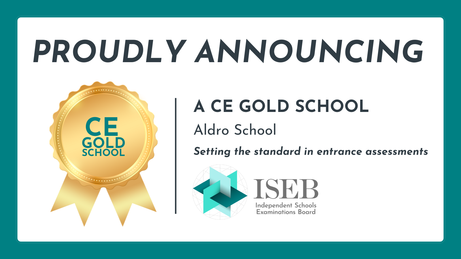 The CE Gold School badge recognises schools that have embedded Common Entrance into their school's curriculum, identity and progression routes for pupils. These schools enter candidates for CE exams every year, and utitlise CE tools and resources in their classrooms. CE Gold Schools will be able to use their badges on their website and other channels and will be invited to collaborate with ISEB on support content for schools and pupils.
