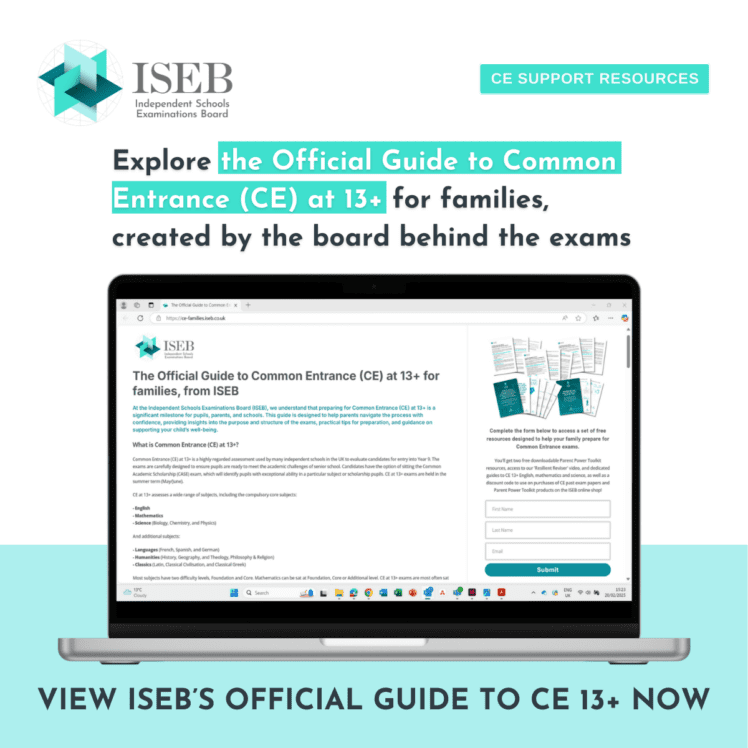 ISEB has created an Official Guide to Common Entrance (CE) at 13+ to support your family in preparing for these exams. In this one-stop guide, you will find clear insights into the exam structure, practical tips on supporting your child’s preparation, and expert advice on supporting your child’s well-being.