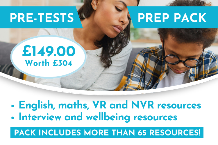 Set your child up for Pre-Tests success with the official prep pack from the exam board. This exclusive pack contains more than 65 resources for English, maths, VR and NVR, as well as pupil wellbeing and interview prep.